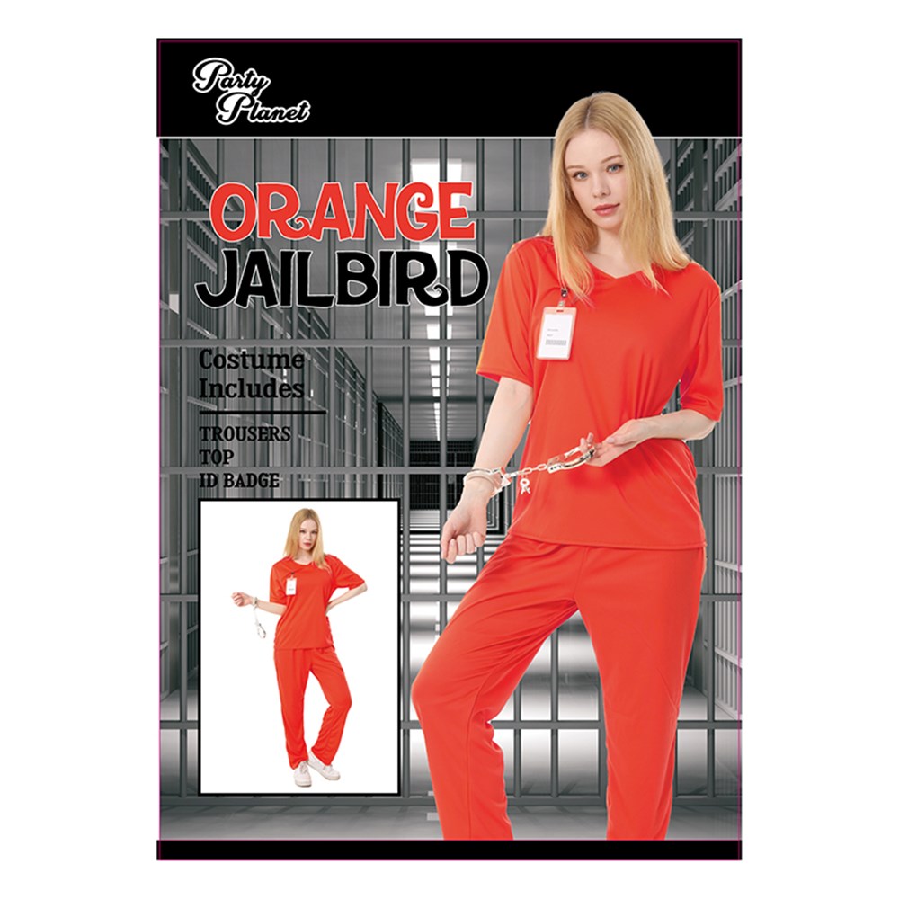 ORANGE PRISONER INCLUDING TOP. TROUSERS, ID BADGE