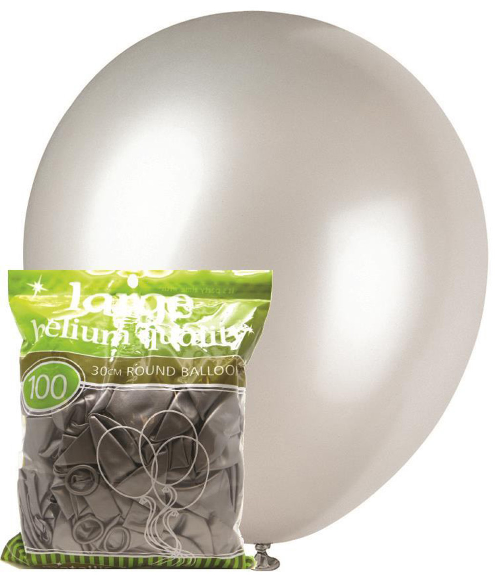 100 pk 30cm Metallic Silver Latex Balloons